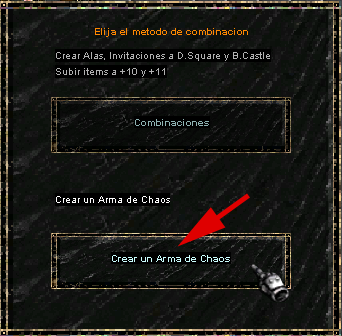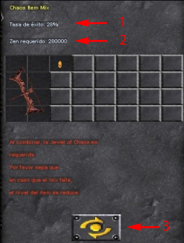 En caso de fallar la combinación, los items que se usaron bajarán de nivel, o desaparecerán en el caso del Jewel of Chaos.